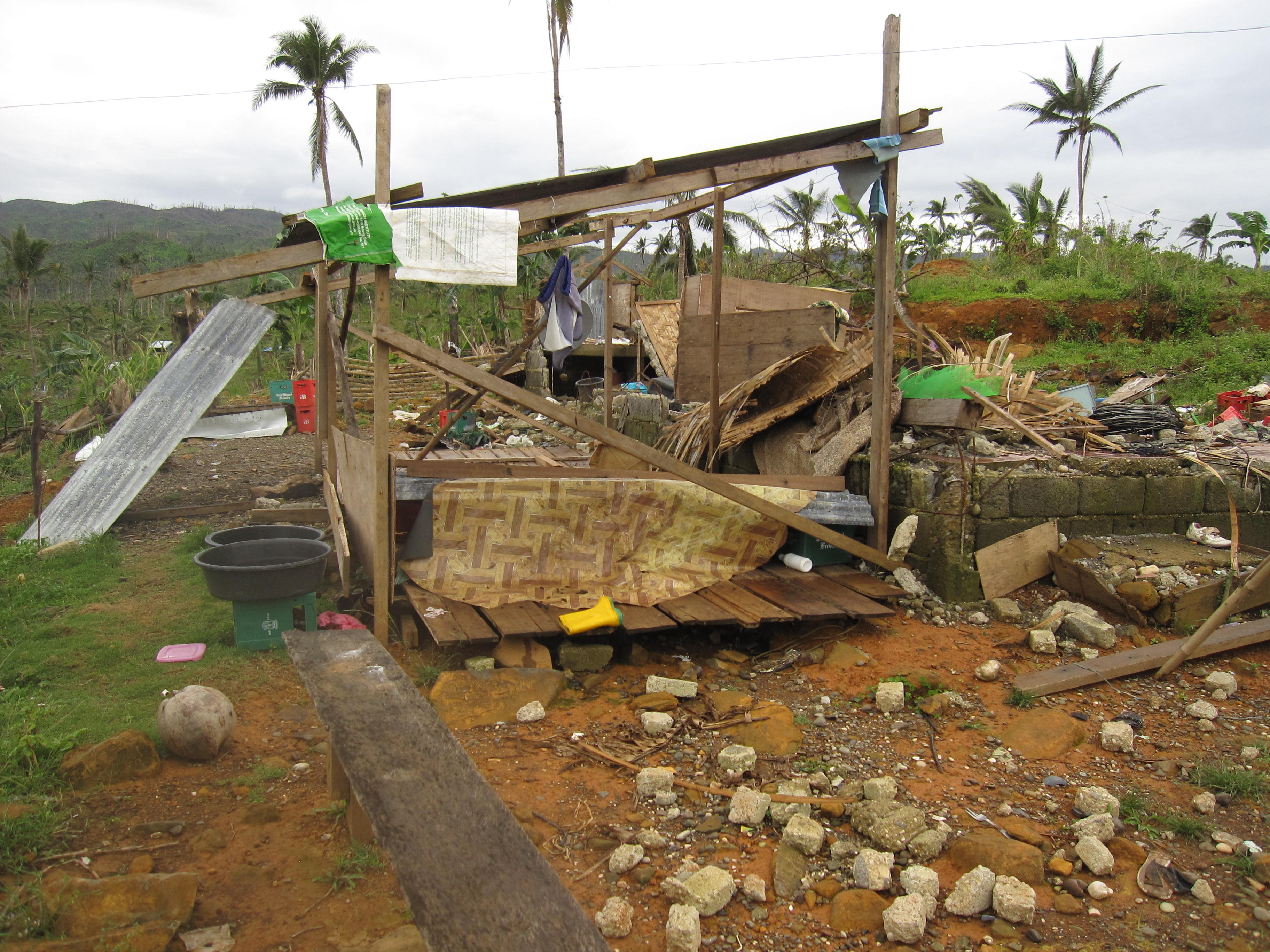 Larisa lost her small business selling biscuits and cigarettes in the typhoon. Even if she did have the money to replenish her stock, no one would have the money to buy these luxuries anymore, she explains. Her husband worked in the local rice-mill, but there is no more work with the mills and paddy fields destroyed.
