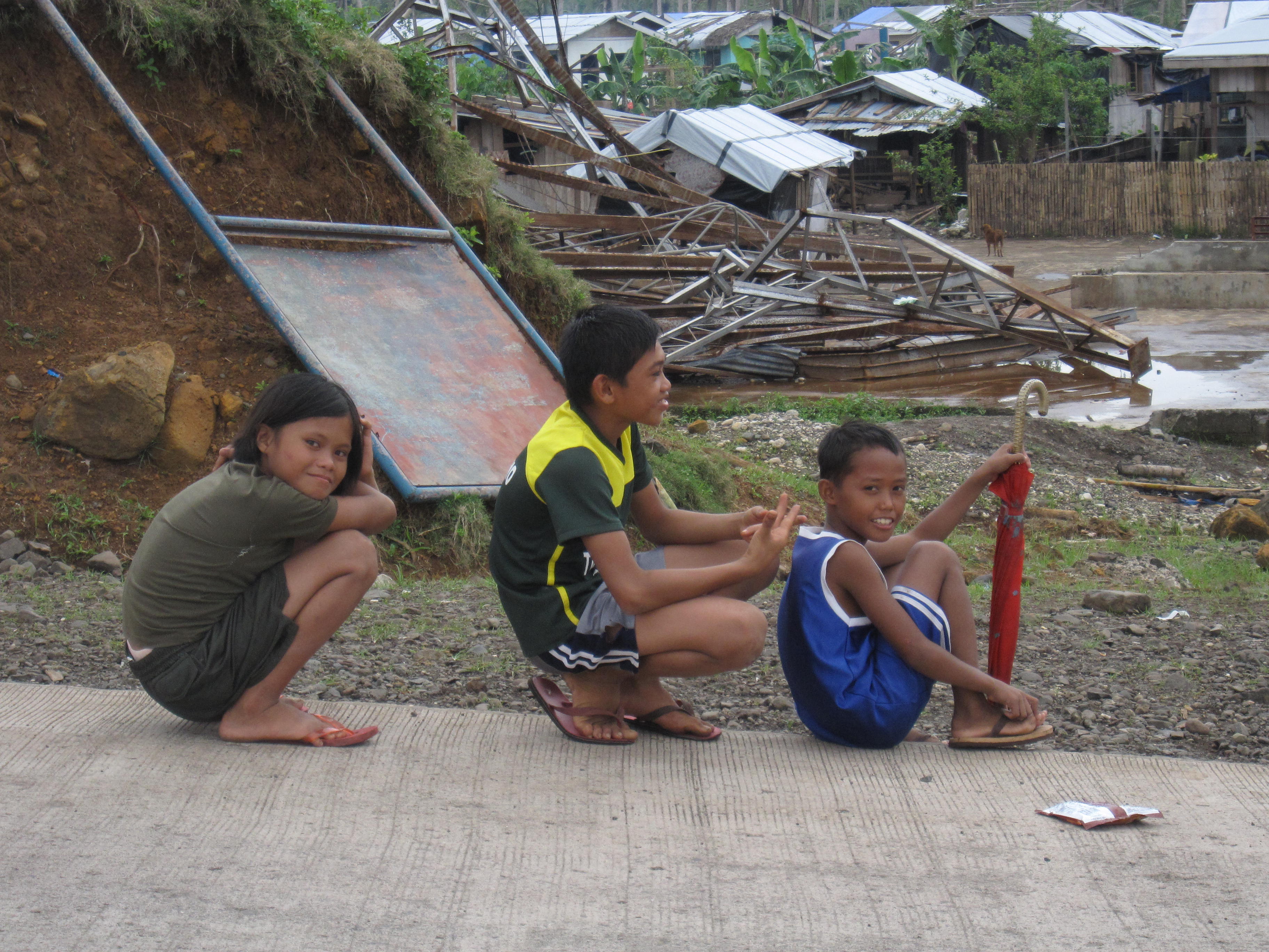 Boston, Davao Oriental, Philippines – Larisa Loreto is leaving her husband, her two young daughters, and her home, which Typhoon Bopha left in a collapsed heap along the main highway. Goats, dogs and a kitten rummage through what is left of her family’s belongings.